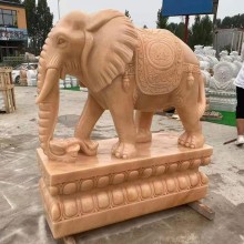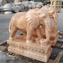晚霞紅石雕大象一對戶外園林庭院酒店景觀動物石雕漢白玉大象雕塑